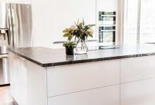 This contemporary, yet charming kitchen is located in the popular tourist destination of Mooloolaba on the Sunshine Coast. The beautiful natural stone bench tops create an amazing space to cook as well as entertain. The appliance cupboard with an automated roller door allows everyday clutter to be packed away instantly. Cabinetry is also included on both sides of the island bench to increase storage space and reduce unwanted items on the bench top. An additional smaller sink is situated on the living side of the island bench to allow guests access to beverages without having to enter the kitchen space.